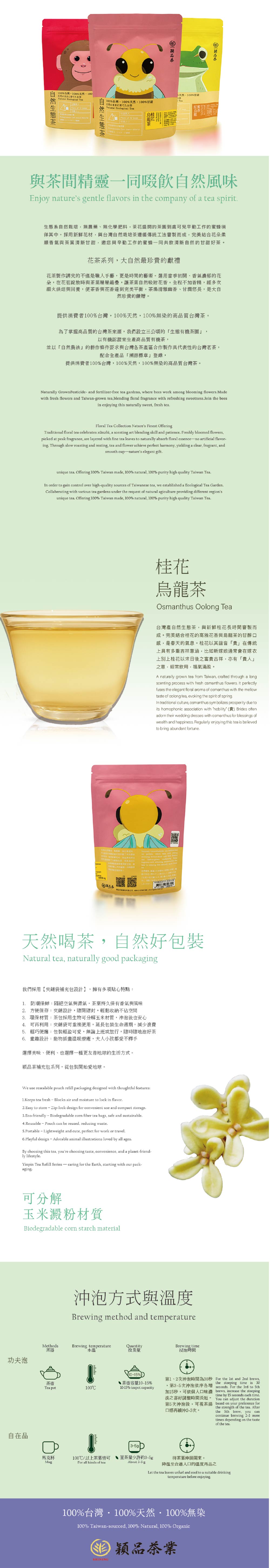 桂花烏龍茶/3.0g/袋/12入 台灣生態茶與新鮮桂花窨製,花香高雅、茶韻甘醇,散發春日氣息。桂花諧音「貴」,寓意富貴吉祥與「貴人」相伴,常飲福氣滿盈,品味中蘊含美好祝福。 成份:烏龍茶 桂花 產地:台灣 NT $320 加入購物車 直接購買 ※購買本商品,付款後預計3個工作天(不含假日)出貨。 產品介紹 回上一頁